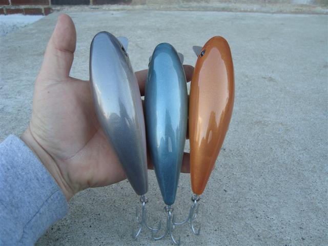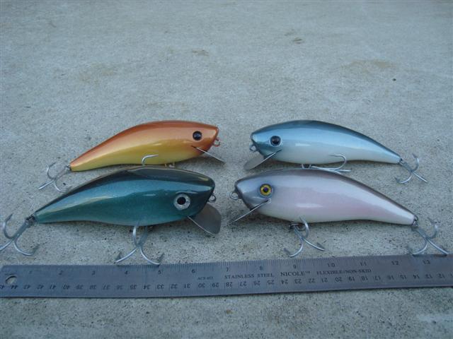 Finished up the last of my big stuff for awhile. The flaptail and pencil are white cedar and weigh 4 oz. The swimmers are 6 1/4 and weigh between 2 and 3 plus oz . I made them in several thicknesses. Will be bringing these to plugfest. Hope it still is a go.