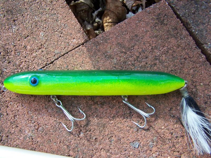 Here is a large wood super spook I finished today,need to work on tyeing trailer hooks now