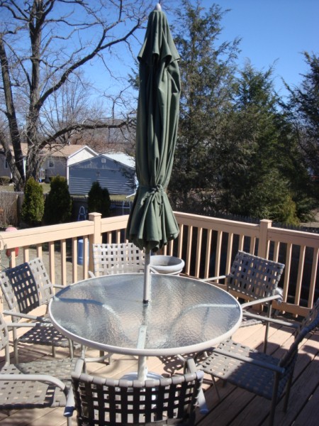 Outdoor table chairs umbrella