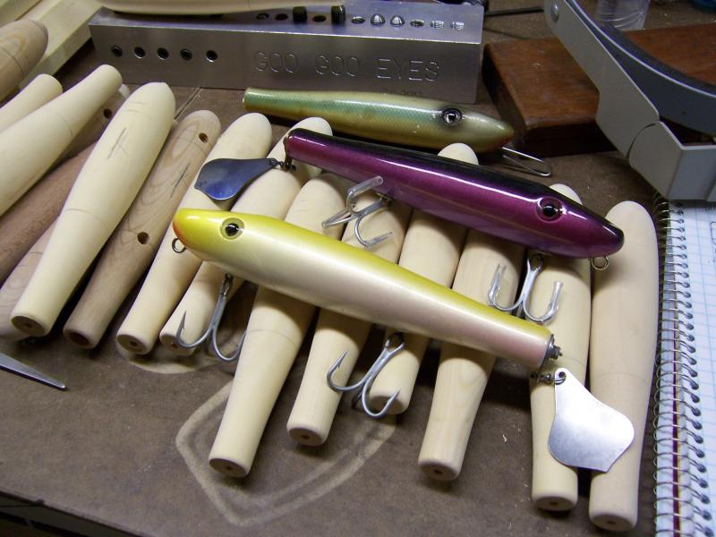 I'm workin on a bunch of stuff ,, all at different stages ,but none finished .. Love all of the above .. Jiggy that flaptail will raise fish like your spook I'm betting .. Always nice stuff Larry . Paint is mint ,, beer cap lip is way frickin cool .