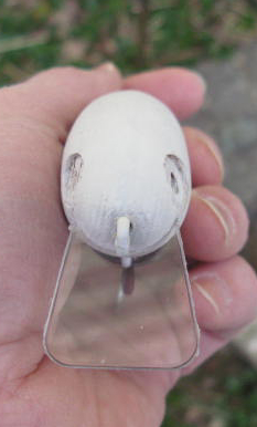 The #3 bait weighs 2.5 ounces. This is the first one in that size. I'm going to make some more and play with the balance and lip size/angle more. I suspect there is a sweet spot in there somewhere... Then I'll go to a thicker piece of wood and give that a go. What I like about the thinner piece of wood is the the bait sits vertical in the water without any weights, so it can be tuned.