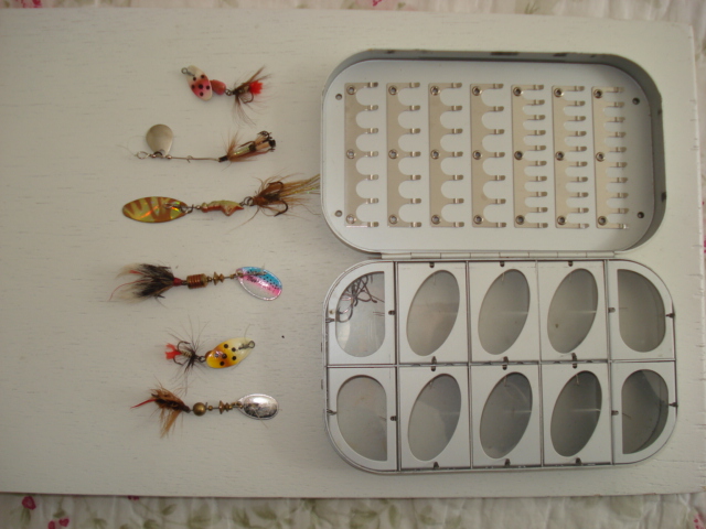 ..Okuma flybox used, condition; cosmetic 8/10 outside, inside is 9.9/10. $20 shipped include the small spinners.