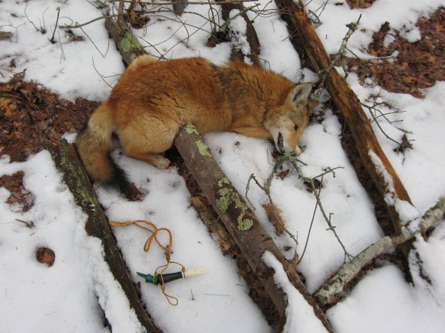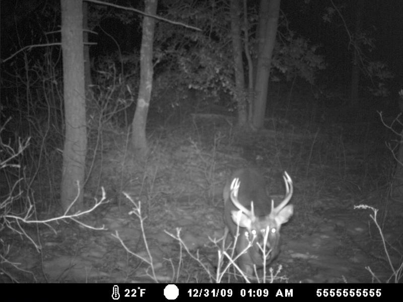 Bill look who else lives in the back yard! Also have pictures of 8 point, 6 point, two dif. 4 points and lots of does. Next season I hope to have a fun time in the (back yard). I have the camera set up on a trail 50 yards from my back deck. After I clean out all the coyote I bet it gets even better. I have cleared a 70'x150' small plot and will plant some alfalfa there this spring. Jane has set the rules and I can not shoot deer closer than 100 yards to the house as she likes to watch (her) pet deer in the yard. Thats only good till there is no meat in the freezer than it's ok .