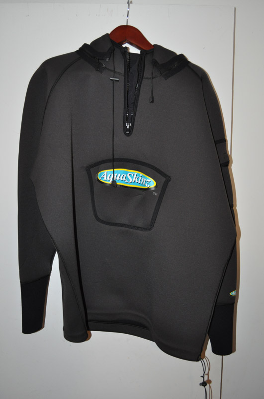 Last is an Aquaskinz Rampage dry top. Size XL. This is the heavier neoprene top with the zip off hood. Fit's a 44-46 jacket size.