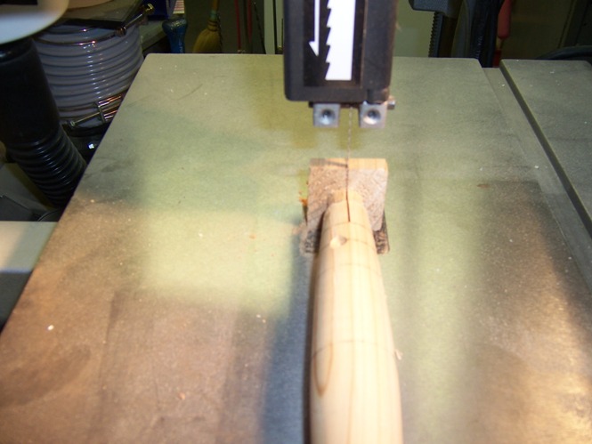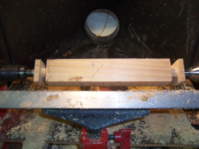 remove your plug from the lathe and remove both sqaure ends, I use a band saw, but a back saw works well also...