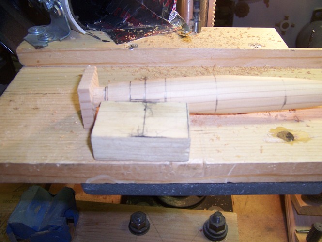 Start by finding center and marking the plug body out... the plug is 7" long and 1 1/16" at the widest point.. using a gouge rough out the square edges, make a cylinder slightly larger than the 1 1/16 target diameter .. the target diameter for the nose is 11/16.. Make a mark at 3 3/8 and 3 3/4.. this area between the two lines will be the widest part of your plug.... the target diameter for the tail is 1/2"... rough out your body leaving enough rom for sanding the final profile..