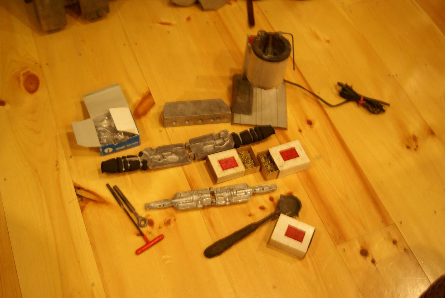 I HAVE 2 EEL SKIN MOLDS, A LEE PRODUCTION POT, HOOHS AND THE EYELETS. ONE MOLD IS 3.5 OUNCES, AND THE SMILINN BILL ONE I DO NOT KNOW HOW MUCH IT WAYS BUT GUESS AROUND SAME. THEY ARE FROM AN OLD CANAL RAT. HE TOLD ME THEY WERE MASE FOR THE CANAL. THE GUY WAS 86. EVERYTHING FOR 300.00