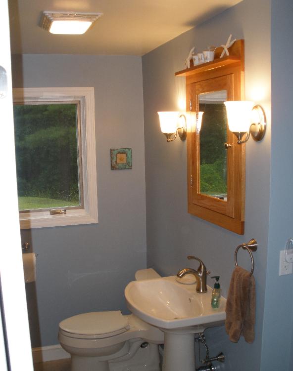 nice job. I am glad I had a chance to pee in your newly renovated bathroom, although without the cabinet, thanks.