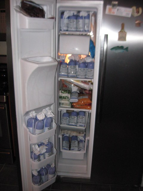 Just back from my Montana yearly meat hunt. I had 7 doe tags and filled all seven. Sorry no pictures of the carnage but here is a picture of the freezer full of venison hamburger. Did not draw a buck tag this year but as Goose knows I hate cooking horns they take so long to do in the oven and then they are still to chewy. There were 7 of us this year and everyone tagged out. Great year and the airline shipped all the meat home no charge as they screwed up our flight out so all bags and boxes were free.