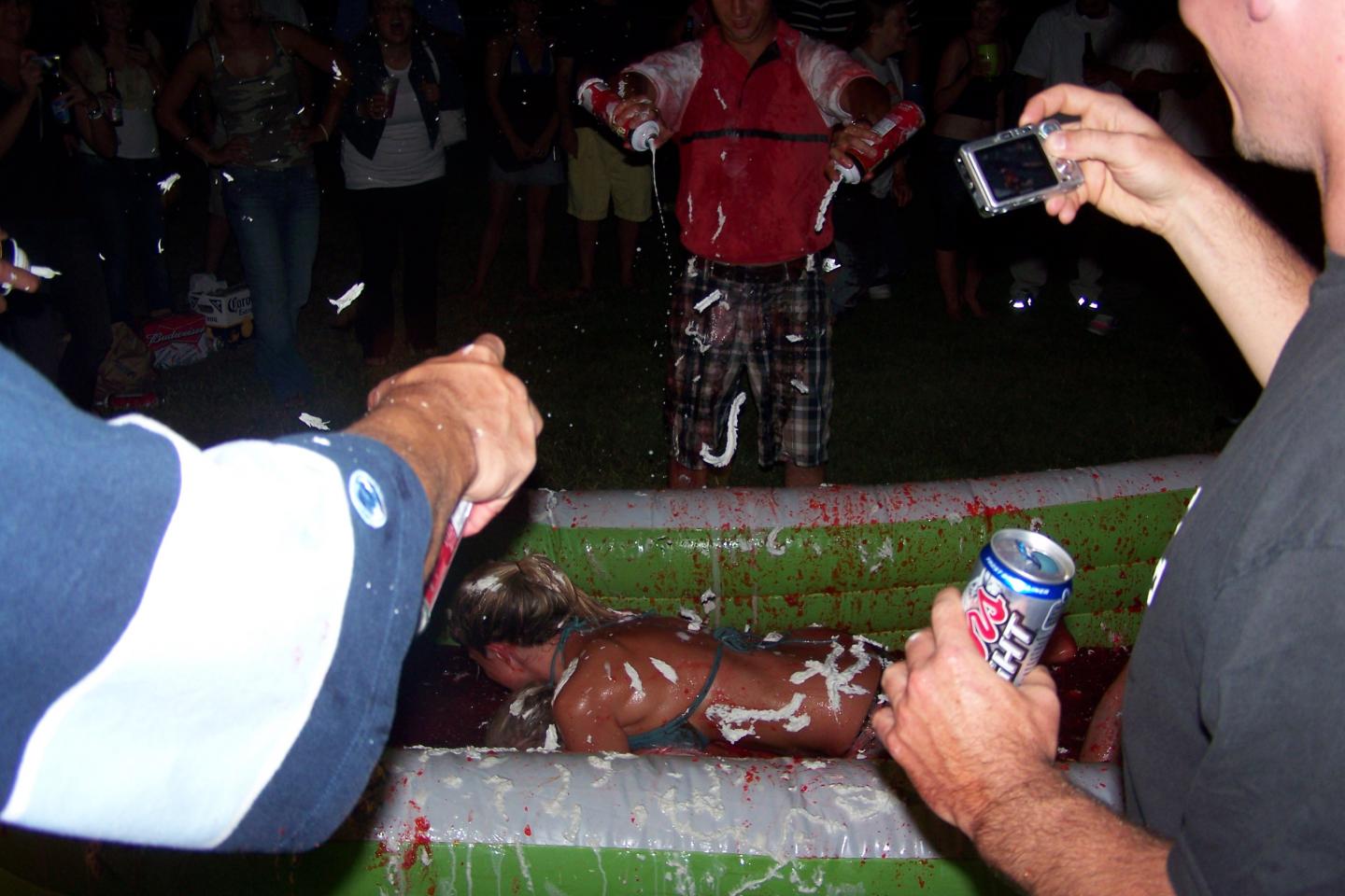 Each round started with the girls being sprayed down with whipped cream then wrestling til one girl have up. It was madness. People were going crazy. the wrestling lasted like an hour.