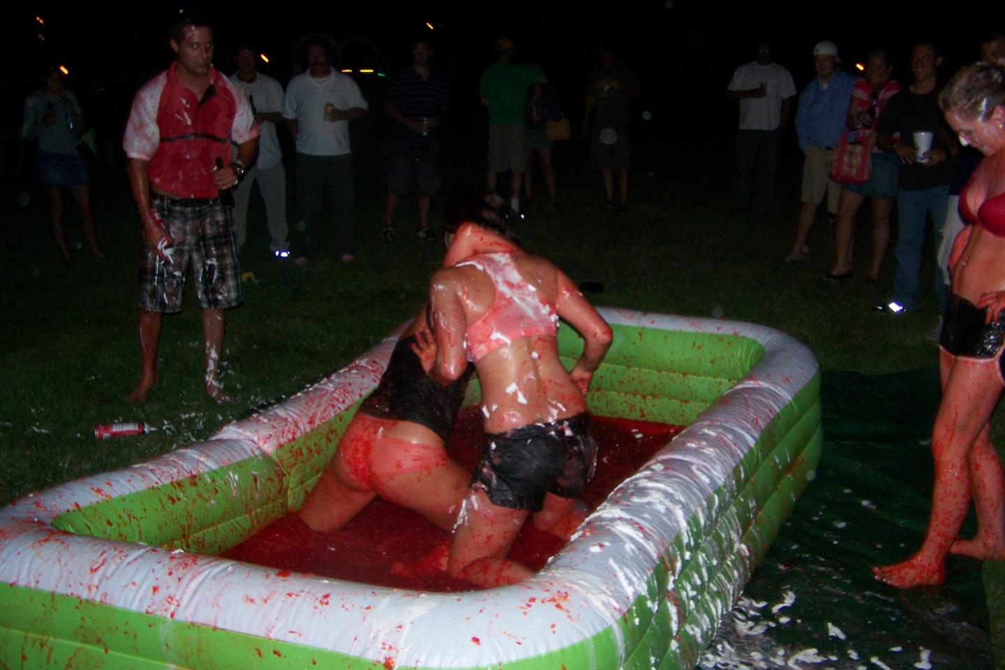 We had 8 girls that wanted to wrestle, top prize was 387 dollars. after a few hours of liquid encouragement it was on.