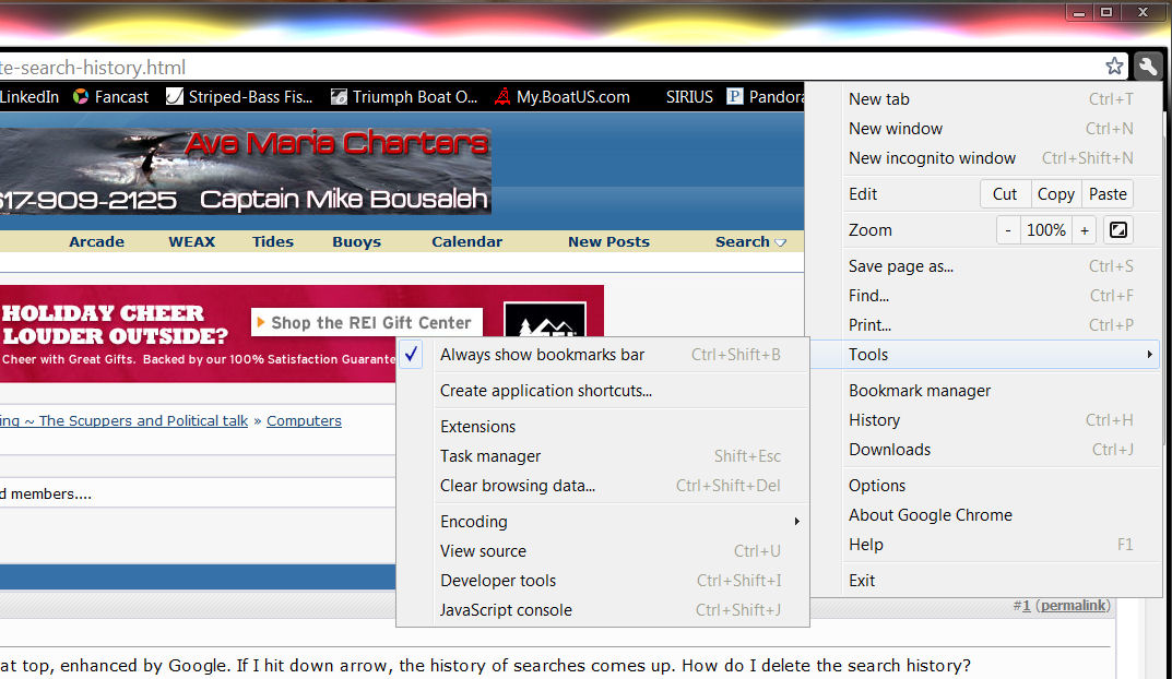 I use comcast.net as homepage. Just lazy. Has a search bar at top, enhanced by Google. If I hit down arrow, the history of searches comes up. How do I delete the search history?
