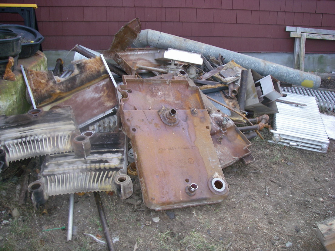 I have a pile of scrap steel and cast iron FREE for the taking. My guess is an easy 1500 #s. Radiators, boiler, steel piping and a small amount of copper.