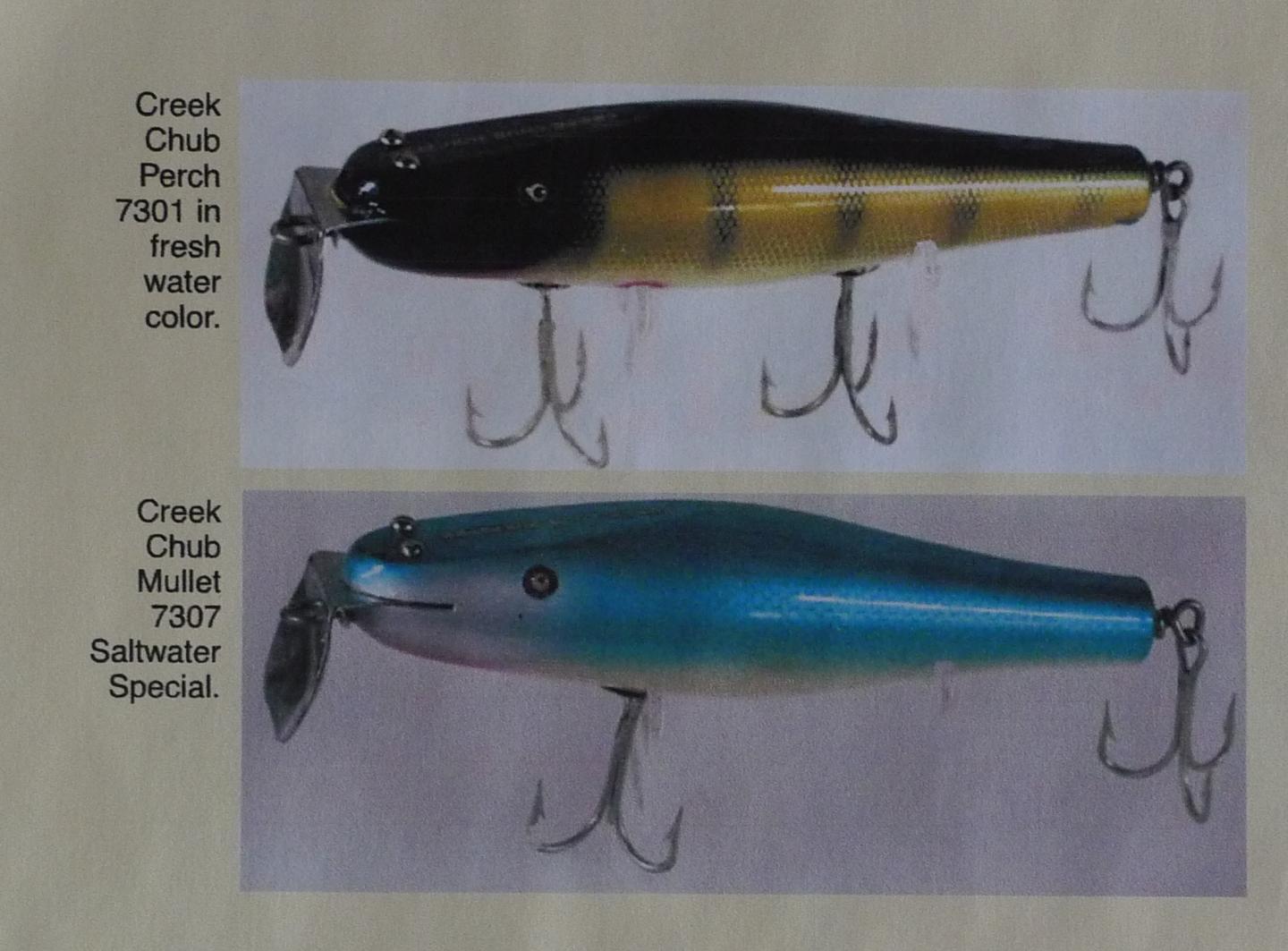 I was reading through Frank Pintauro's (Hunting & Fishing Collectible Magazine) article on SW Classics (#2 in the Series) and came across the Creek Chubb Husky Surfster pictures. This was a hugely successful plug in the 1960s. Most were made by CC with the typical Surfster lip and 3 hooks but some RI fisherman preferred it with only 2 hook positions (Special) and a Pikie lip for sub surface fishing.
