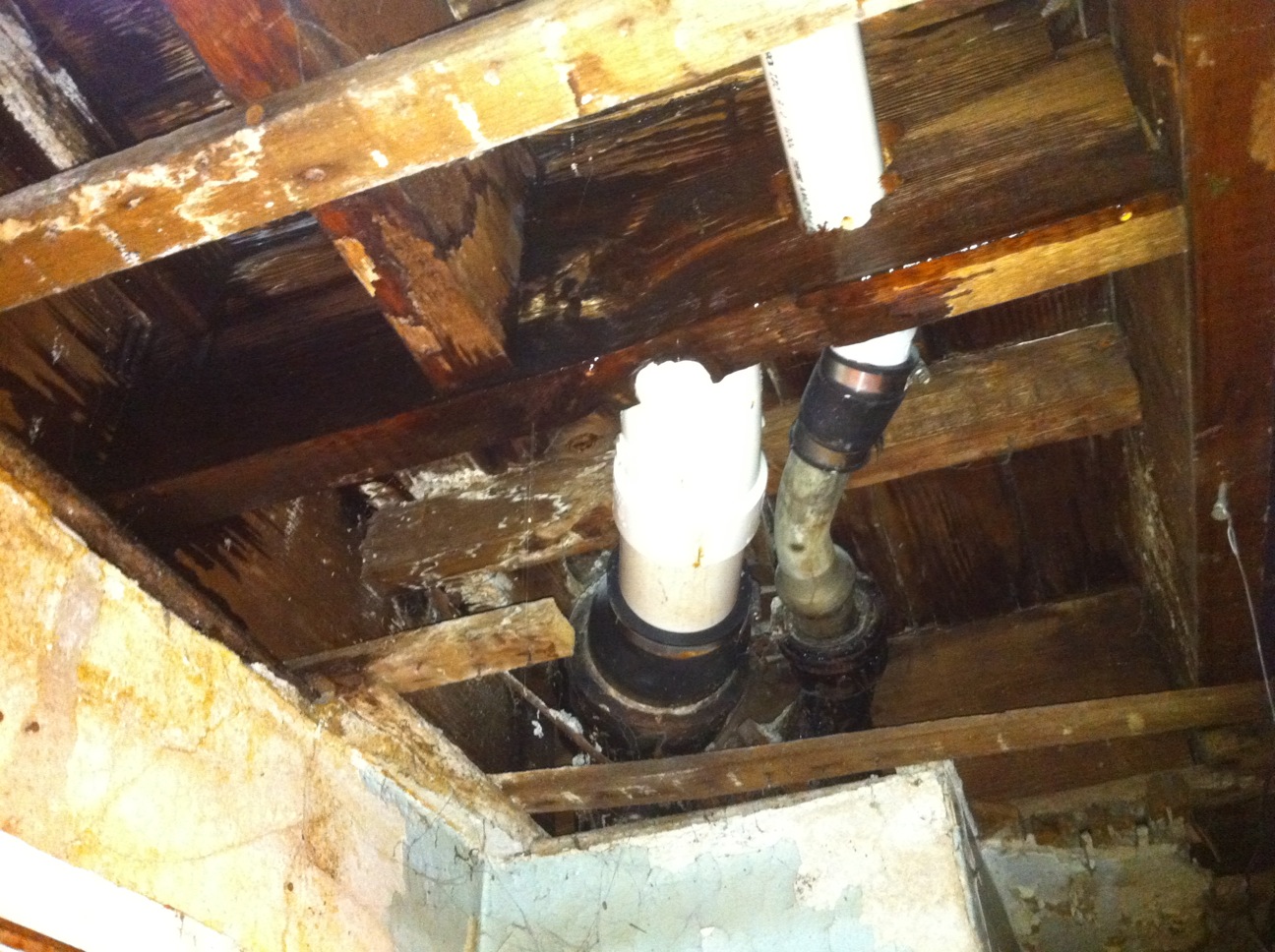 The second floor tenants were just evicted for non payment of rent for 5 months and when the moved out they decided to jam the toilet and sink with rags and leave it on a slow drip.