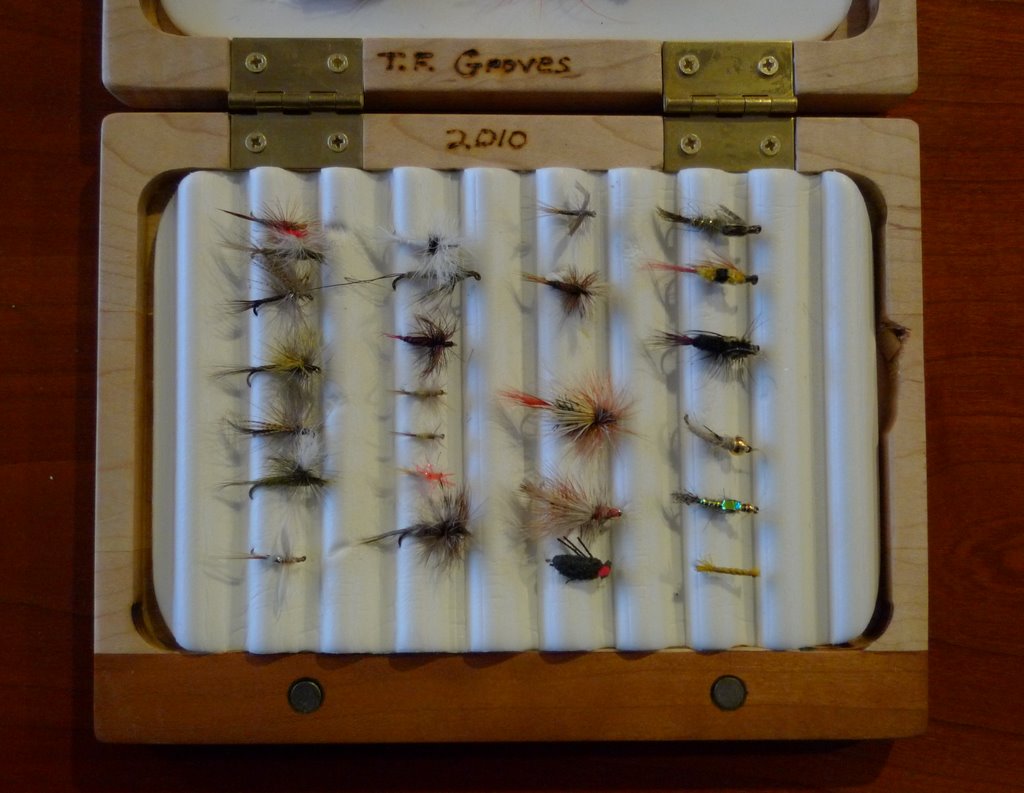 The end of my building season is here and i just made my first A40 , a Musso jr swimmer for a fishing friend in LI, and a flybox for my son. My son graduates from college so I needed to make him something that hopefully he will hang onto for a long time. Last summer I gave him a refurbished bamboo 8' 3 piece Edwards fly rod that used to be my grandfathers and now looks mint again.. so the fly box goes with the rod and an Older Systems 2 reel with a sinking and floating spool setup.