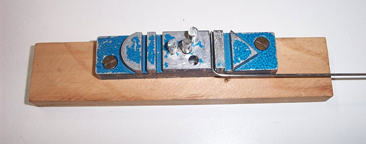 Striperknight, it's just a little wire bending jig used for shaping wire I bought about 20 years ago and never used until I started building plugs. The only part I have ever used are the pins and slot for bending the wire. Should be very easy to reproduce the essential parts on a piece of hardwood. ...mrpogie