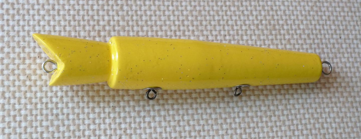 Buddy of mine picked up a nice Floyd Roman Sizzler, interesting plug and I've got to say a butt ugly one too! Any idea of what type of swimming action these had? From the way it is weighted it looks like it would have a topwater darting action. Peter, ever swim one of your's?? May just have to take this one for a swim.