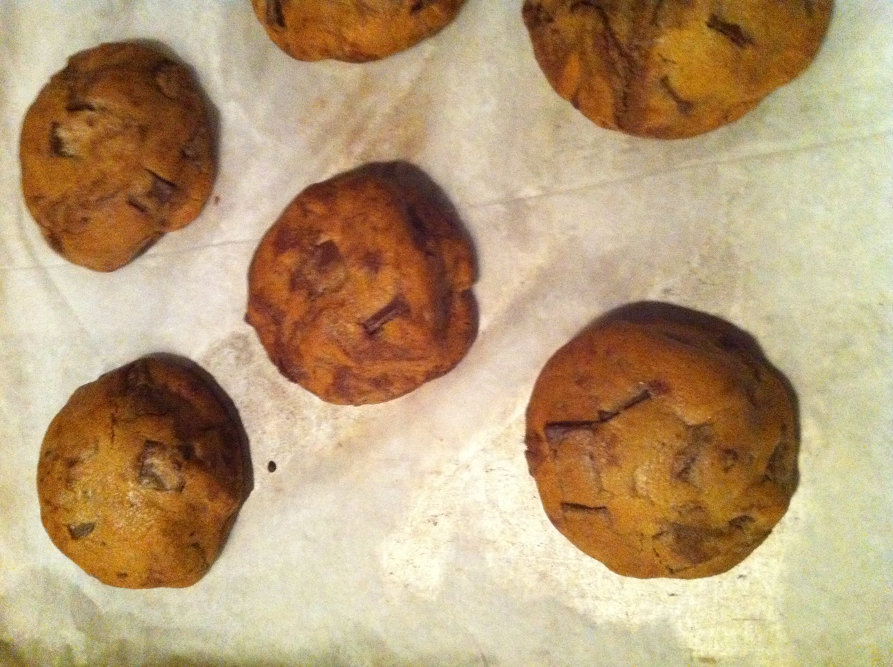 in the oven now are chocolate chunk cookie wrapped reese peanut butter cups, should be pretty good.