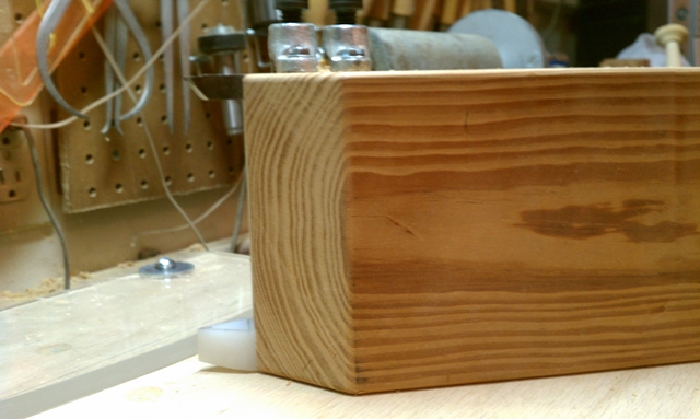 I added handles and some weight to the block and cranked the lathe up to 2885 rpm. The handles made a big difference in comfort of use.