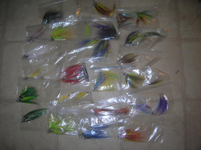 lastly a picture of the currently "done" group... ther will be plenty more coming in the next few weeks... I've got a bunch of Pinkney style trollers in primer and a dozen lefty remakes in 2 ounce 6" size...