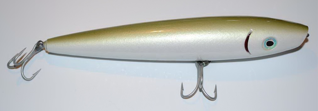 This is a popper that walks like a spook. I didn't get a good shot of the face, but it is deeply cupped with a 1" Kutzall sphere.