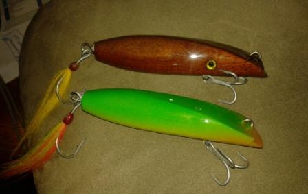 What else. seems whenever i hit the lathe everything comes out darters. these two turned from batu- a denser version of mahogany- swam the same as the maple ones i've turned. (medium zig - say 6-10" swing each way, maybe 16"-24" depth at a slow to medium retrieve)