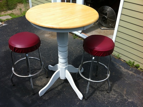 Used, I recovered the stools myself......great for man cave! $40 picked up!