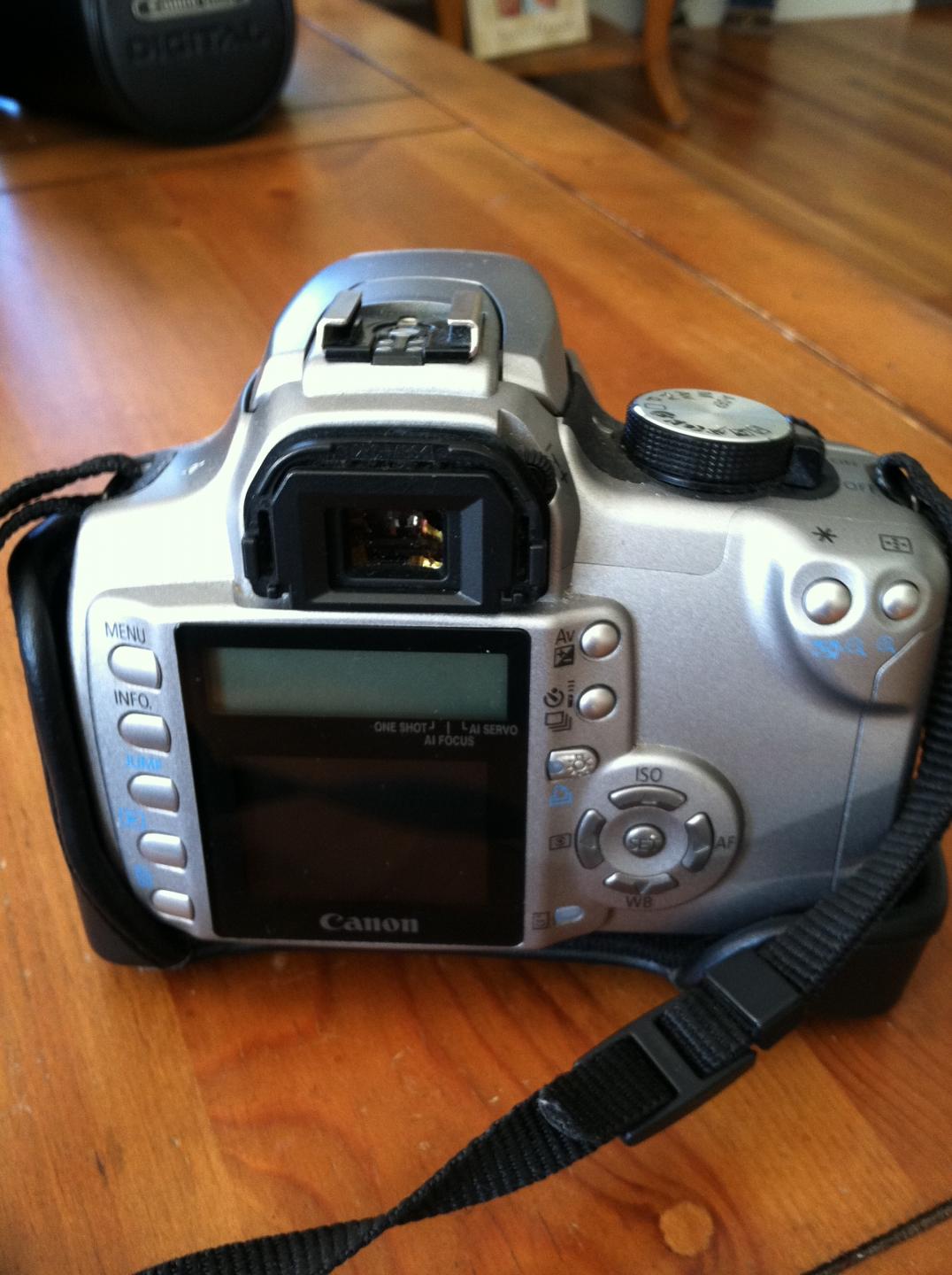 Excellent condition. Comes with protective carrying case and also travel style bag that could hold other lenses, which is brand new. Super easy to use, and takes beautiful pictures. We bought a new camera and just don't need this one anymore. It's a steal for its condition. $375.00 picked up.