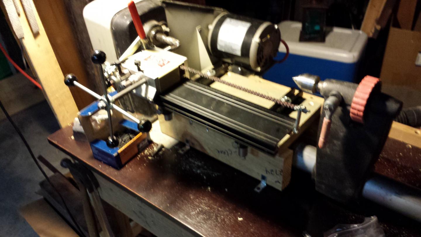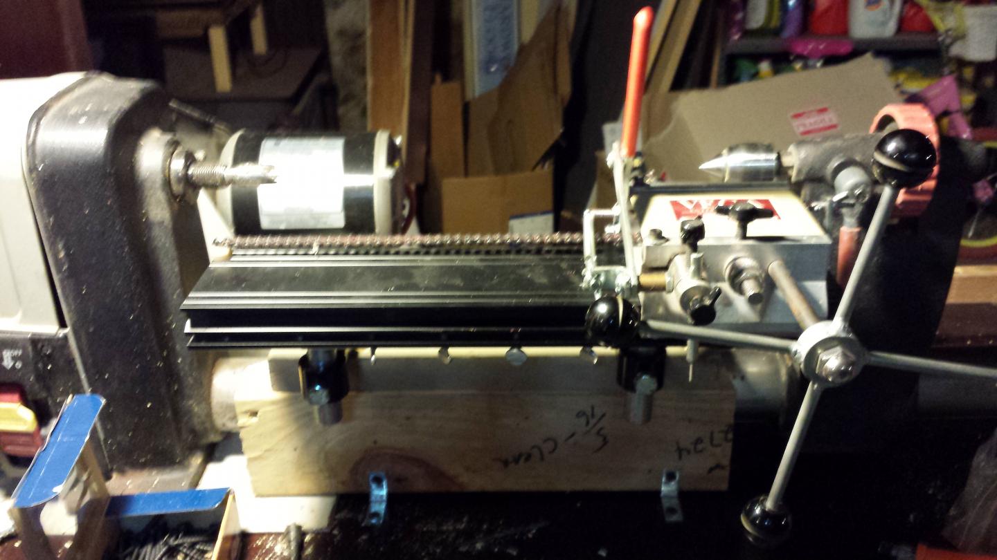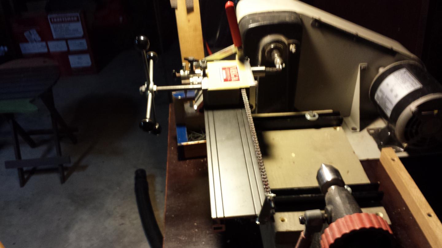 So, I think this might be along the lines of how it's supposed to be set up, but I'm not sure. I got this 2nd hand, no manual, so I'm kinda flying in the dark a little.Any suggestions would be helpful. Poor Ross is always having to translate tool speak for me, so feel free to use terms like "the part that spins the wood" or "the other end that holds the wood"...lol