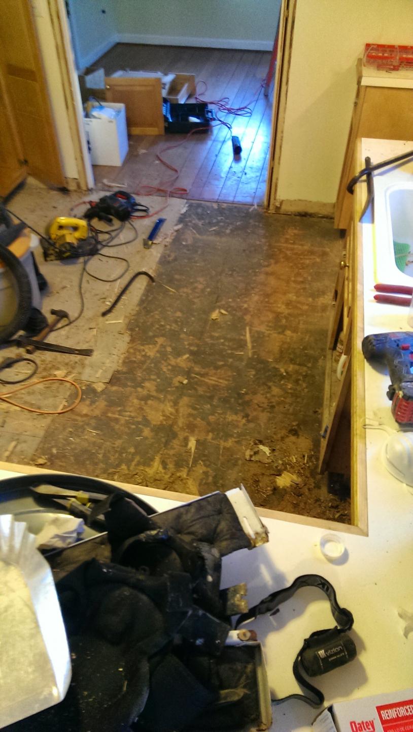 Ripping out the floor in my kitchen and got down to a potentially worrisome layer of water damaged flooring. Anyone have experience with the black crap on this floor? Especially before I attack this bad boy with a demo blade.