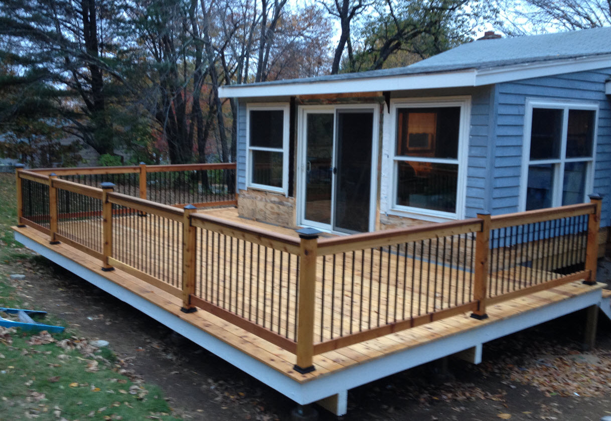 Just finished putting in a new deck on the back of the House. Came out pretty good. Did this by myself....Cedar decking and Railings.