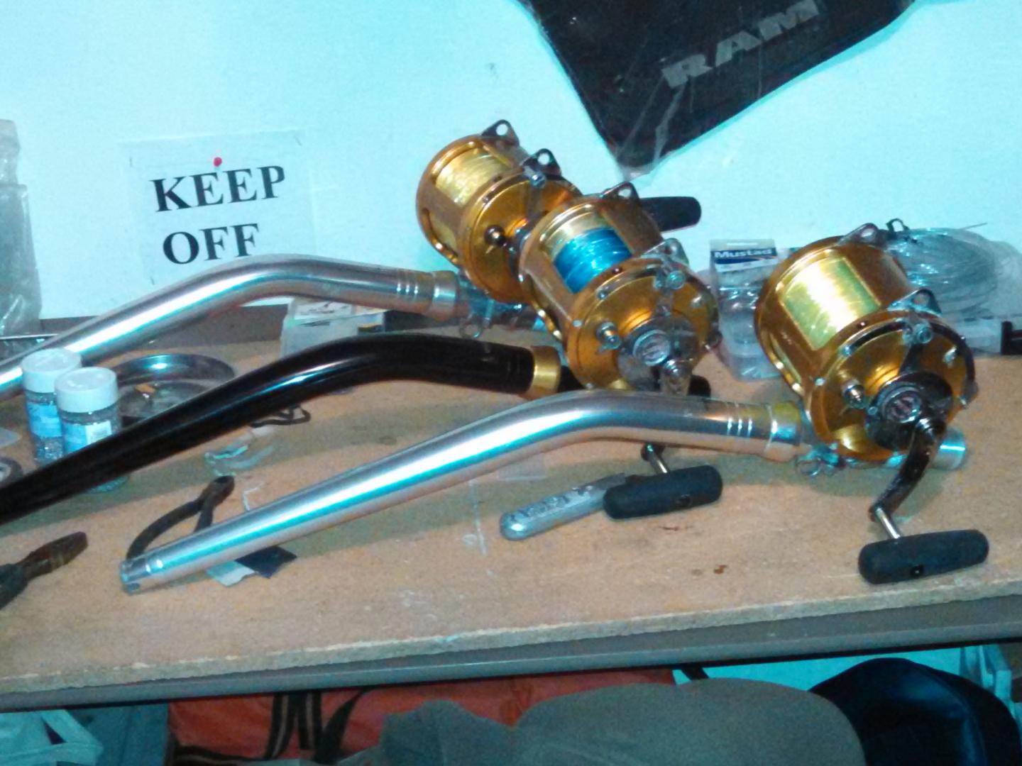 3- Penn 80TW Single speed on custom 130 Class Custom Fisherman Outfitters Bent butt rods.