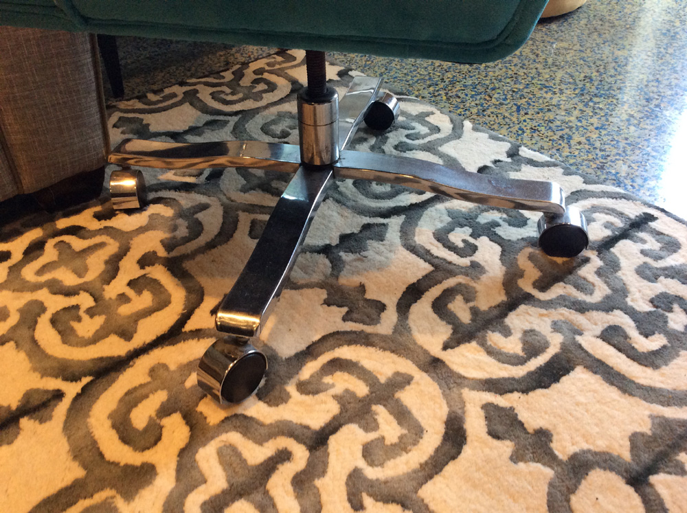 Bought this heavy vintage chair last year for the home computer. Snapped one of the legs the other week. Hard to see from the photo but on one leg the side seams where it's attached to the base are cracked so it bends up.