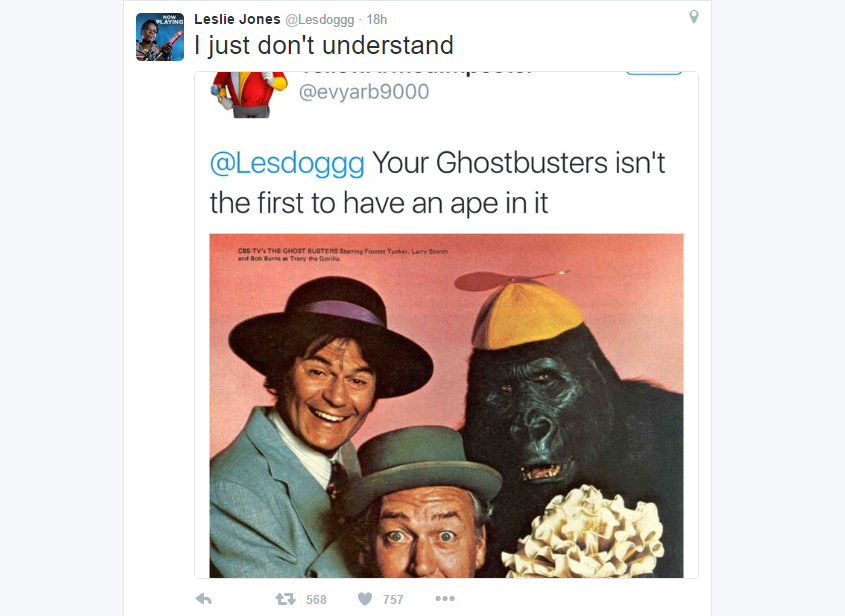 So you tried to post the photo as if Milo posted it, got corrected by john and then switched to . . . well, Milo was still responsible for the photo because it was by others "who carry his water". I suppose that accusation would apply to all the other outrageous posts by those who carry his water, even though Milo did not actually post them. Somehow, his review of the film "sparked", as one Milo critic said, the flow of outrageous comments against Leslie Jones. Right. Like how Trump sparks violence when he says things.