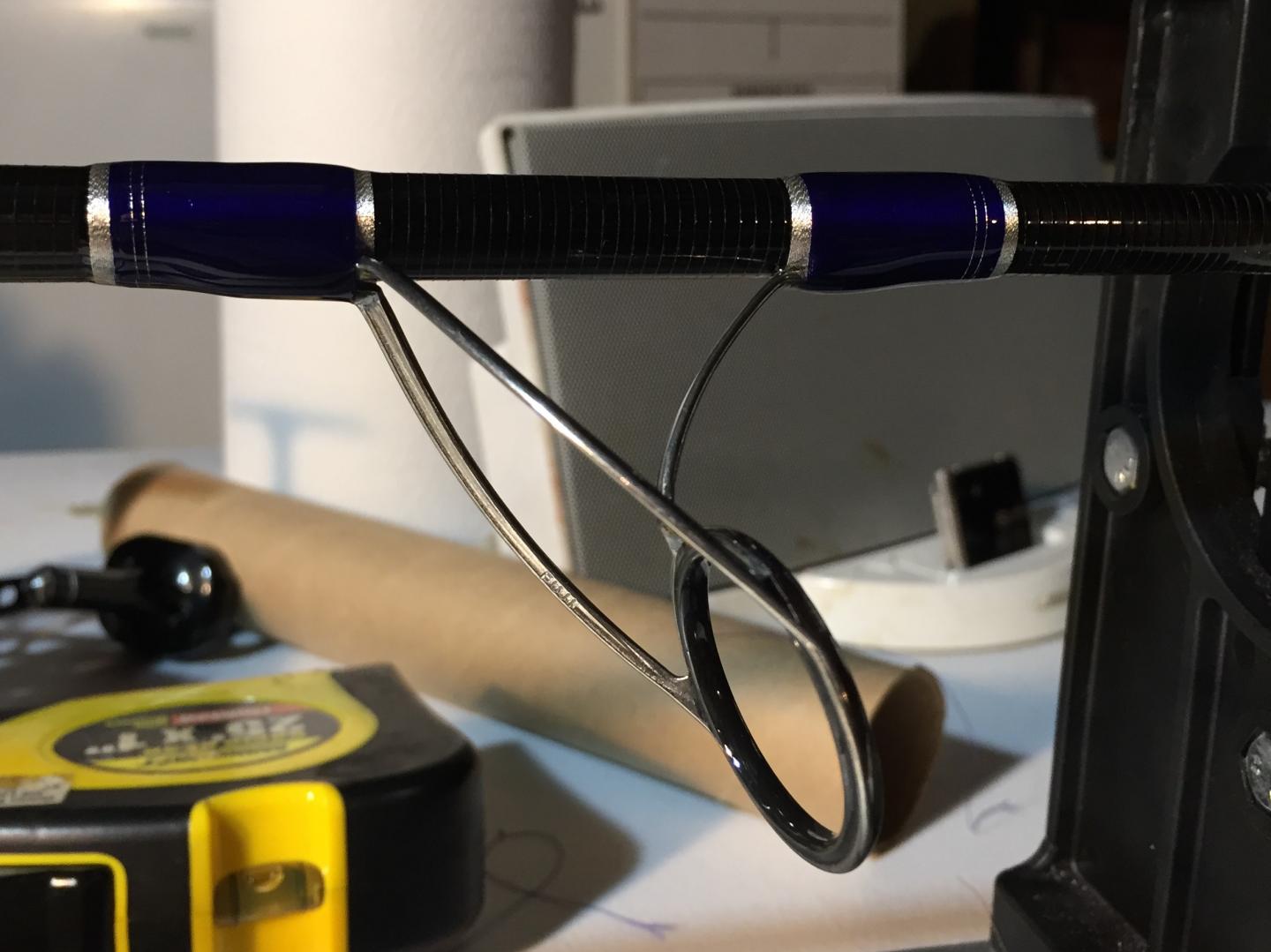 Did you correct the spacing? The 2 pictures of the guide weights, what the difference? Extra guide? Are the frames ti or ss ? Wraps look sweet. Inlay on the silver band thread?