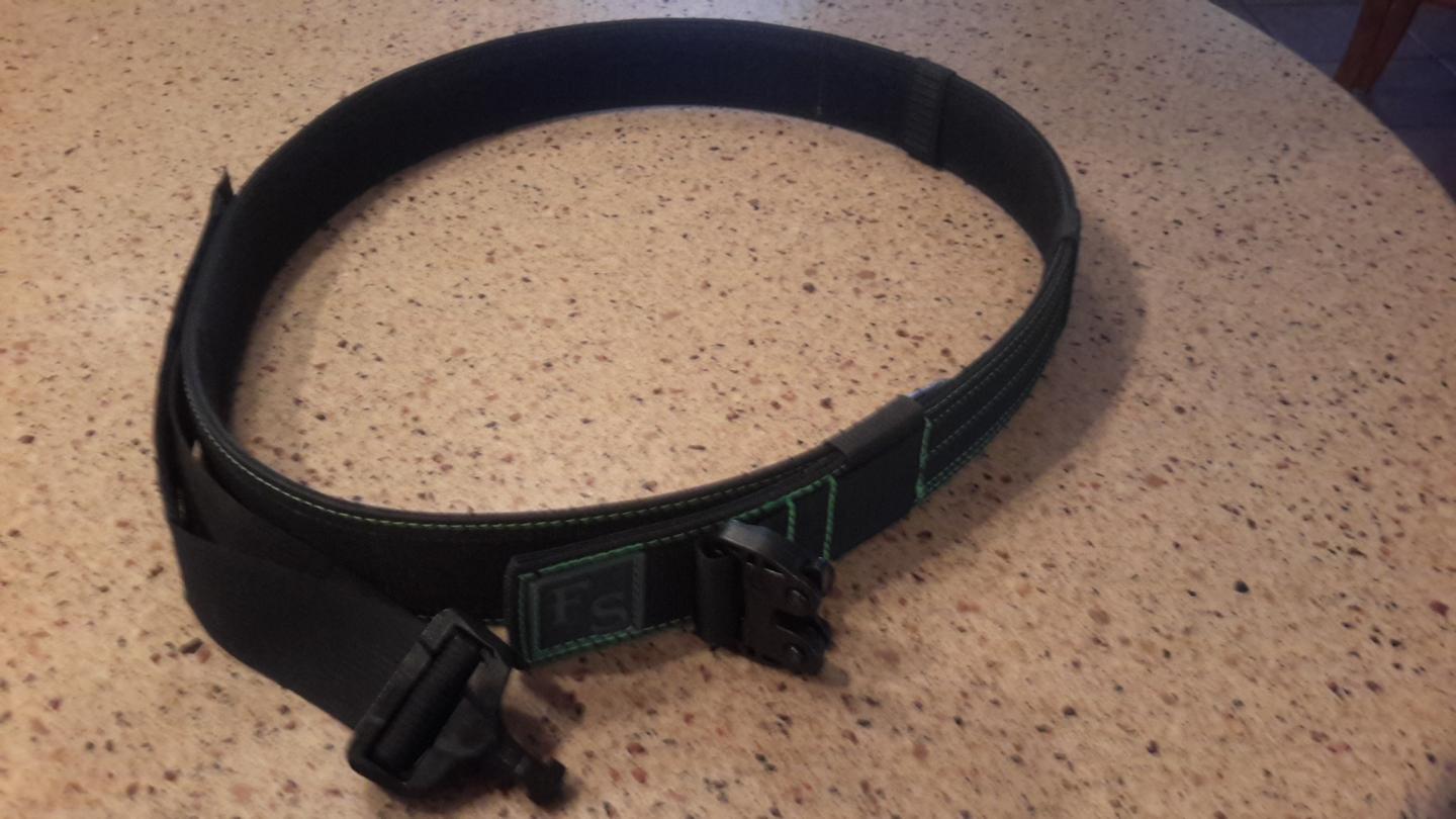 New size 38". Black web/neon green thread. 85.00