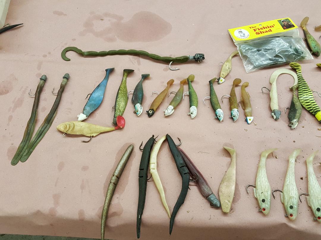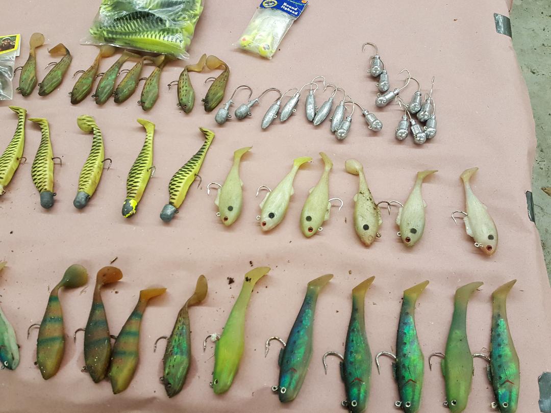 CANAL KILLERS $50 for everything in both pics. There are 20 Mac soft bodies in the bag. The white storm shads are the Heavy version. The lead is 2oz and 3oz. I didn't count but there's more than 50 lures. Most have never been fished as in NEW!