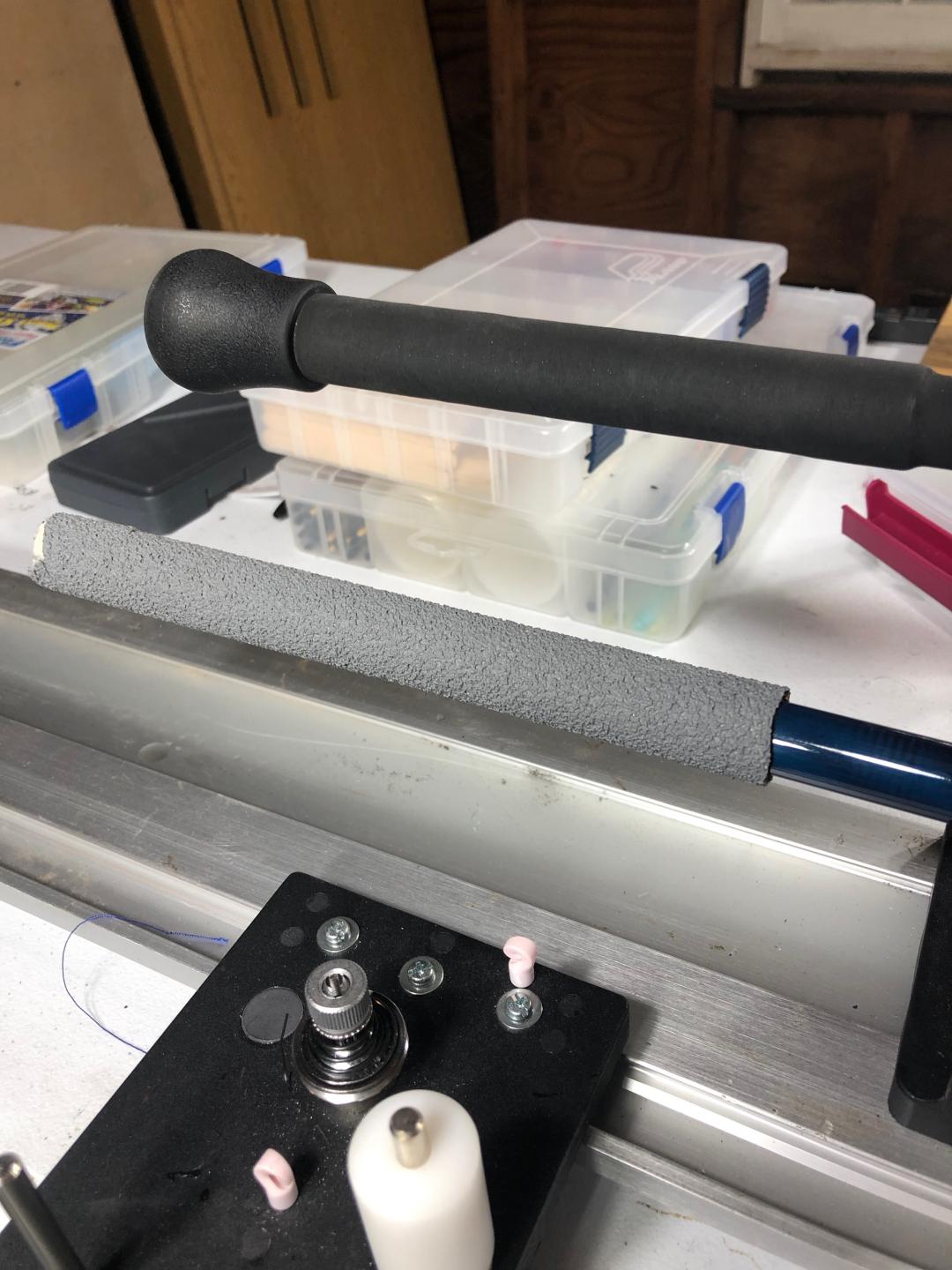 I got rid of the grip tape which enabled me to get the 20mm shrink over it. Butt cap on as well. Probably a little while before I get back to it. Current weight with the handle on it.