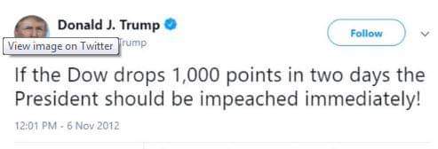 if idiotic tweets caused the market to drop 600 points, how was the market up so much in 2017? Was he restrained and mature in 2017? Nope.