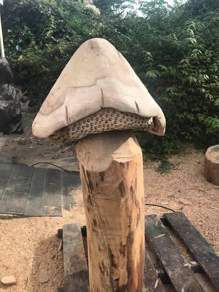 Relative wants a large mushroom, finished up the shaping of the maple cap, lots of carving planned on the stalk which is elm and hard as nails to carve.
