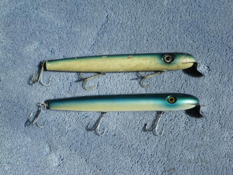 Thanks for the input. I noticed in the pictures on the antique lure site that the 3 plugs have 3 different lip angle face bends. It seems that there was no wrong or right angle. I assume the bend wasn't a big factor. I'm going to make another lip with a smaller lip front,20MM. I was going by the .92 measurement. I will test swim both sizes and give my results. On the overall weight, I will up the hook sizealso. Do you think there would be any gain in action or castability by adding weight in the CG of the plug? Do you know how this plug swam in the original form? Thanks