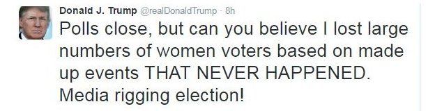 Hillary Clinton should have been prosecuted and should be in jail,” Trump tweeted Saturday. “Instead she is running for president in what looks like a rigged election.” If there were any question that he might be using the term “rigged” metaphorically, he cleared it up: “The election is absolutely being rigged by the dishonest and distorted media pushing Crooked Hillary — but also at many polling places — SAD.”