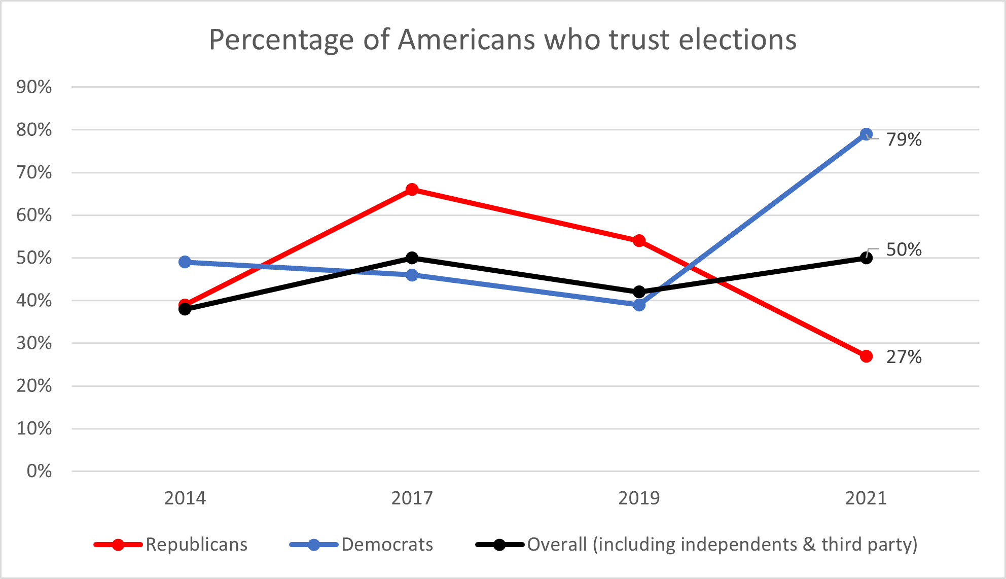 That percentage jumped significantly since 2017 and includes more than half the Republicans we surveyed.