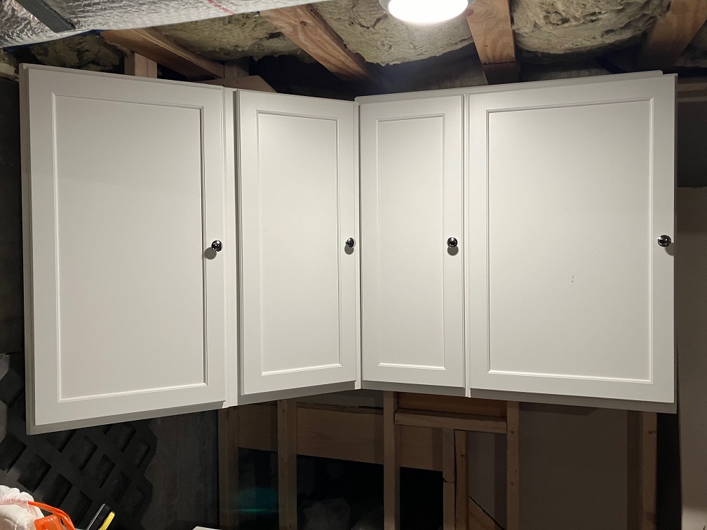 Peg and I have decided to sell her mom's cottage rebuild. We were going to move and downsize after building it, but on living one summer there, we decided the proximity to neighbors and one way dirt road wasn't for us. Long story short Cape Cod Kitchen and Bath screwed up the kitchen cabinet order for the builder and had to redo them to the correct height and we ended up with extra cabinets at no charge, which the builder threw up in the basement. Not sure what to charge for them and not looking forward to having to remove them, but I'm wondering if anyone has any interest. One is a dual 33"H x 54"W (two 27" cab) x 14"deep, the other is a corner unit, 34"W left, 32"R and across front corner to corner 61". Brand new basically, I'll even throw in the toilet paper