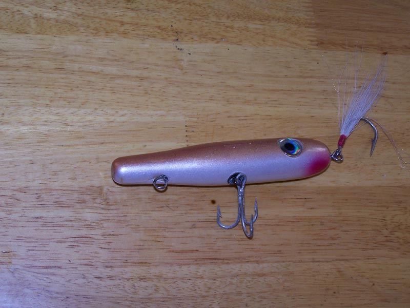 Never thought of countersinking for the grommet. That should give enough beef so it won't splinter when I do the tail wrap. I did move the tie line foward some on ones I made after this one, I did'nt have alot of fowling on the cast or retrieve, but when I hook a fish on just the tail hook it almost always fowled. Have'nt lost any fish but it's a pain to re-tie after every fish. Thanks for the help.