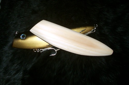 ProfessorM. thank you, maby he'll see this an ANSWER. I couldent take it any longer. so I went down an cut a piece 7" long TRACED the plug then CUT the shape, GRABBED a COLD ONE went out on the back deck an FREE HANDED the sanding to form the FINNISHED SHAPE. now I need to DRILL some EYE SOCKETS, an find out WHERE to PUT the weight. then it's sealing,sanding,priming, painting, topcoat.