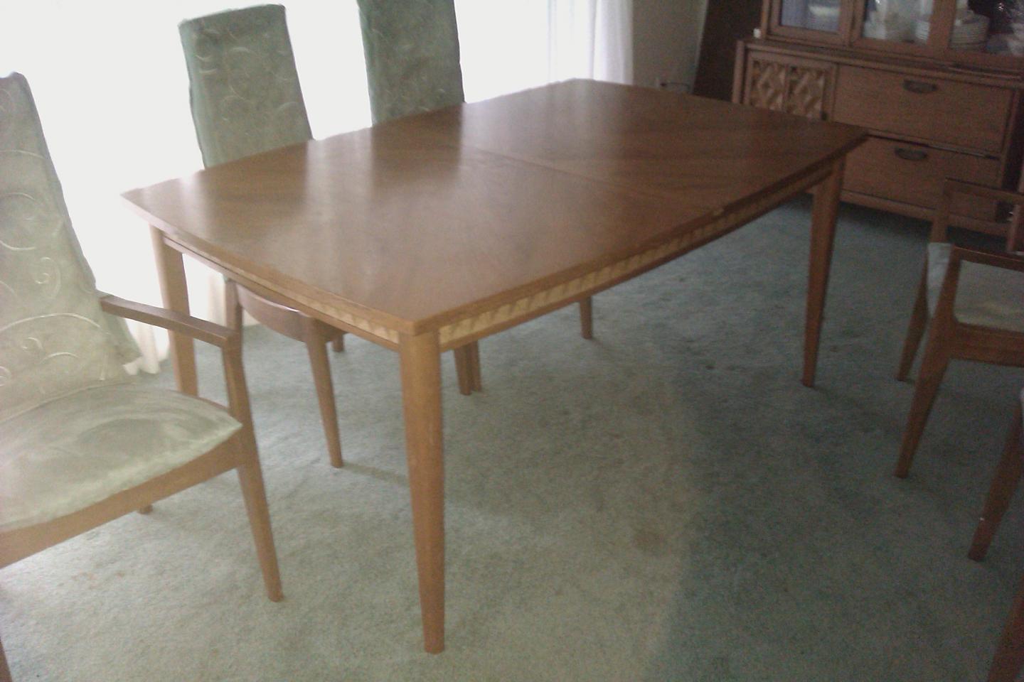 Located in Needham. Sixties style retro look. These are in good condition, chairs, not so much. I'll post pictures when and if someone with working brains comes home.