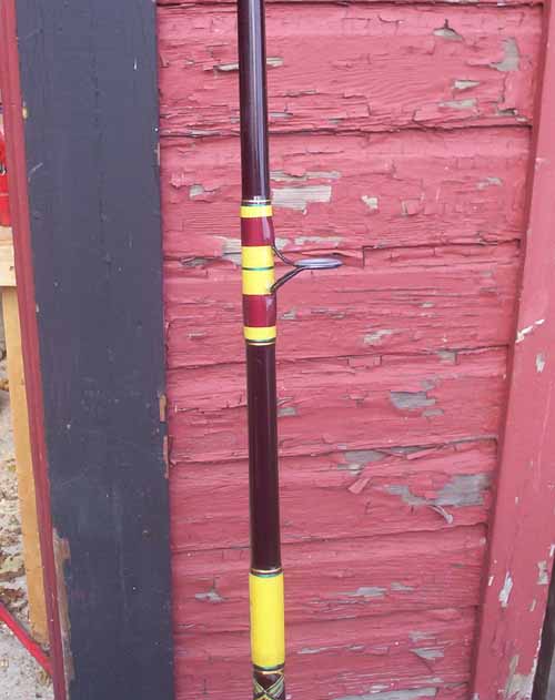 Custom built Lamiglas 1322 (Arra) in conventional. Rod is in great shape and handles fish awesome. Rated 2-5 with a sweet spot of 3 1/2. Trigger reel seat and all fuji guides. Rod was wrapped by a friend of mine on the cape. Thread work is beautiful. $200 firm. Will not ship but will meet within 50 miles of Stoughton, MA