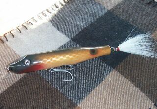 This thing leaves a wake like a small shark is headed yer way and puts a throbbing BEND in my rod like I have a 8lb schoolie on the hook A slightly faster retrieve sends it slightly subsurface but still leaves a swirling bulge on the surface!